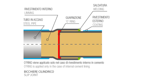 L’étanchéité est assurée par un joint torique (O-ring) positionné dans une gorge à l’intérieur de l’emboîture. Lors de l’insertion, le joint torique est comprimé et garantit l’étanchéité hydraulique du système. Ce type de joint est largement utilisé pour les conduites de grand diamètre destinées au transport d’eau, car il permet une installation rapide et offre une légère flexibilité angulaire.